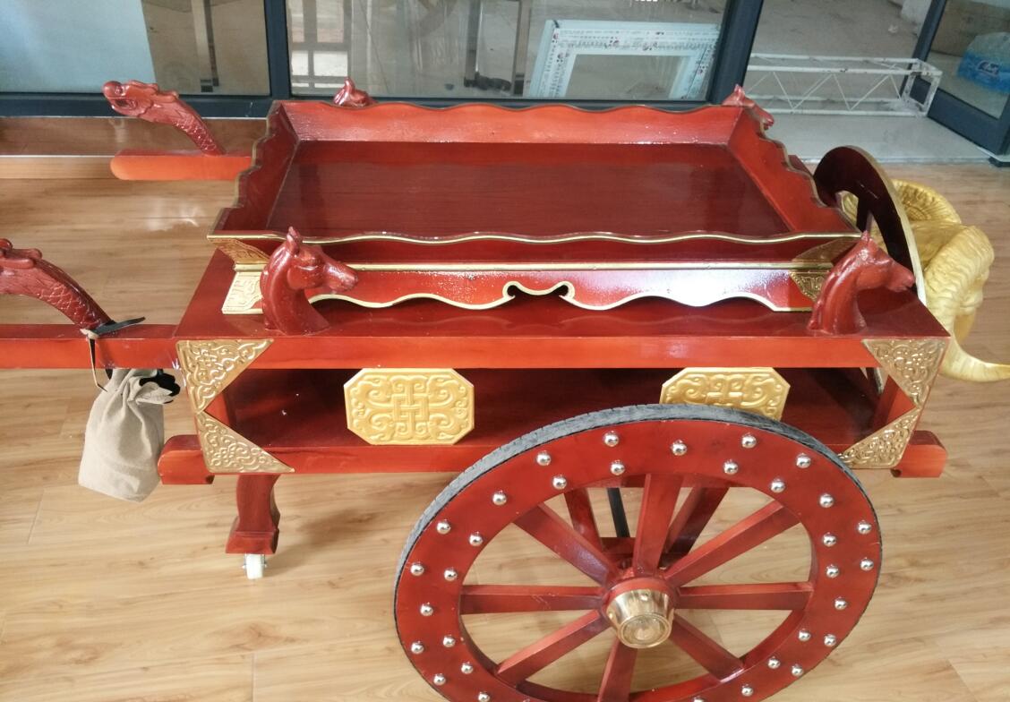 、有木輪子和轎架組合定制而成、木制工藝車做工復雜、一般木工師傅做不了、所以面臨失傳、純木質(zhì)全羊車出售圖片、木質(zhì)全羊托盤圖片、在我們的生活中總有很多非常獨特的車、有一些是罕見的工藝品、這就是木質(zhì)全羊車、給人一種高大上的感覺
